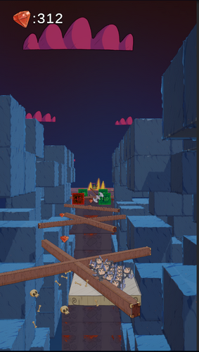 Carefully avoid the obstacles to carry as many units as you can to the end of the track and fight a monster.